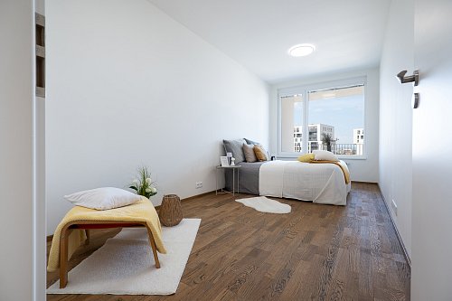 Byt je dispozičně velmi prakticky řešen. Skládá se ze dvou neprůchozích pokojů, koupelny a komory, která může sloužit jako úložný prostor nebo samostatná šatna. Nachází se zde také přípojka na pračku.