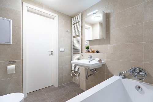 Velkou výhodou bytu je rekuperace, která zajišťuje stálý přísun čerstvého vzduchu bez nutnosti větrání okny, přispívá k vyššímu komfortu bydlení, zdravému vnitřnímu prostředí a zároveň pomáhá snižovat energetické náklady. Jedná se tak o skutečně moderní a úsporné bydlení odpovídající současným standardům.