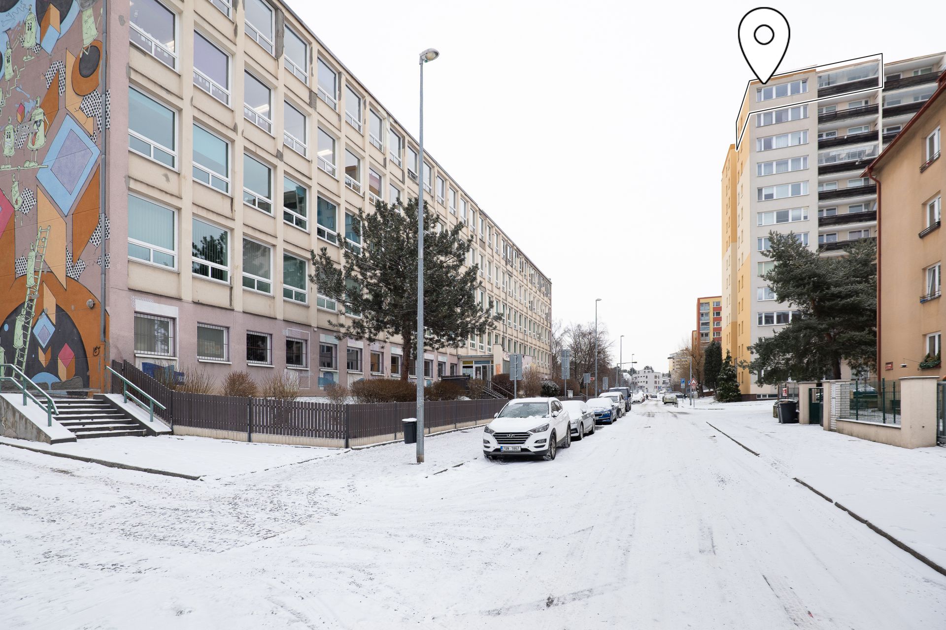 Byt se nachází v klidné slepé ulici, kde je minimální provoz. Díky tomu zde panuje příjemná atmosféra a bezpečné prostředí, které ocení zejména rodiny s dětmi.