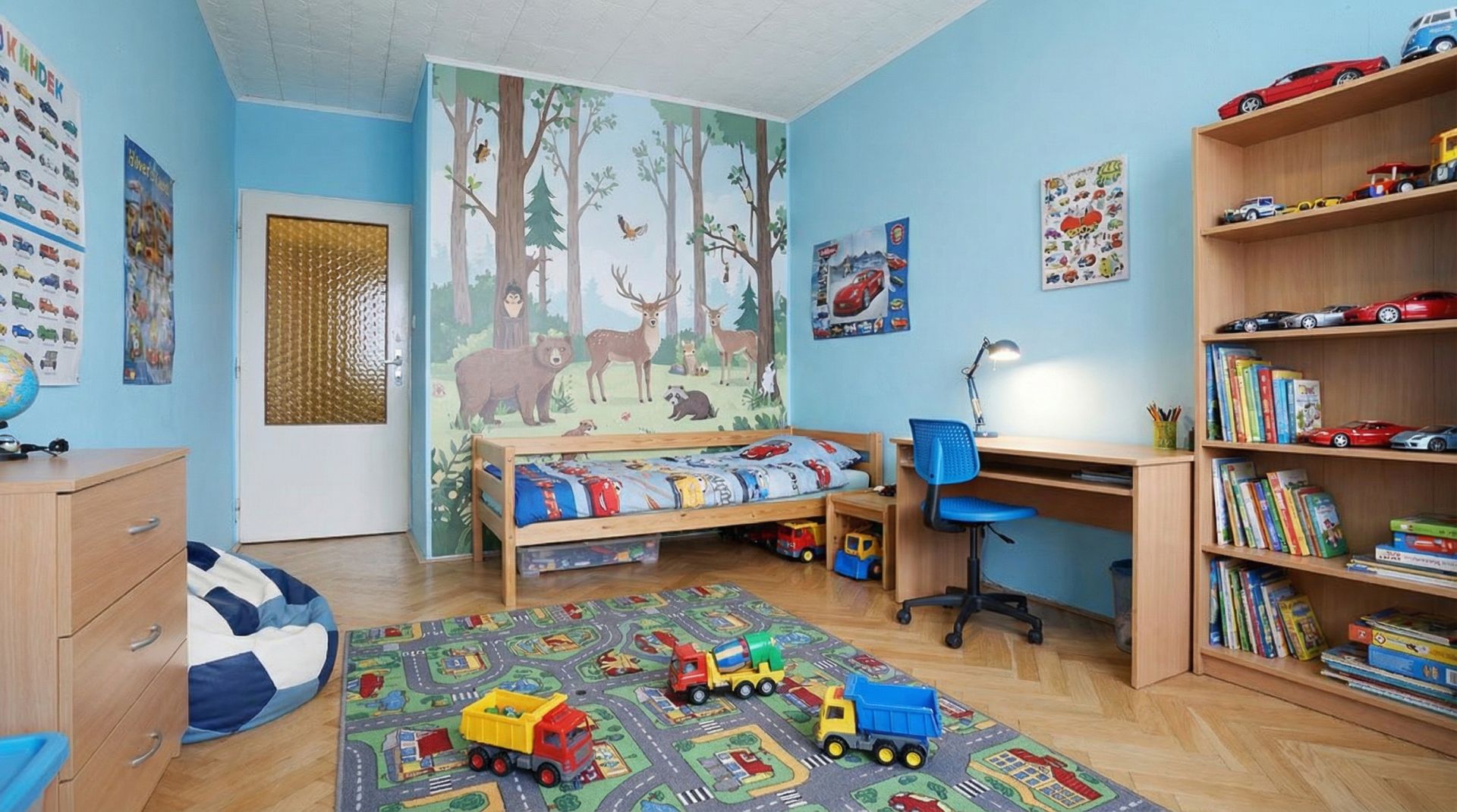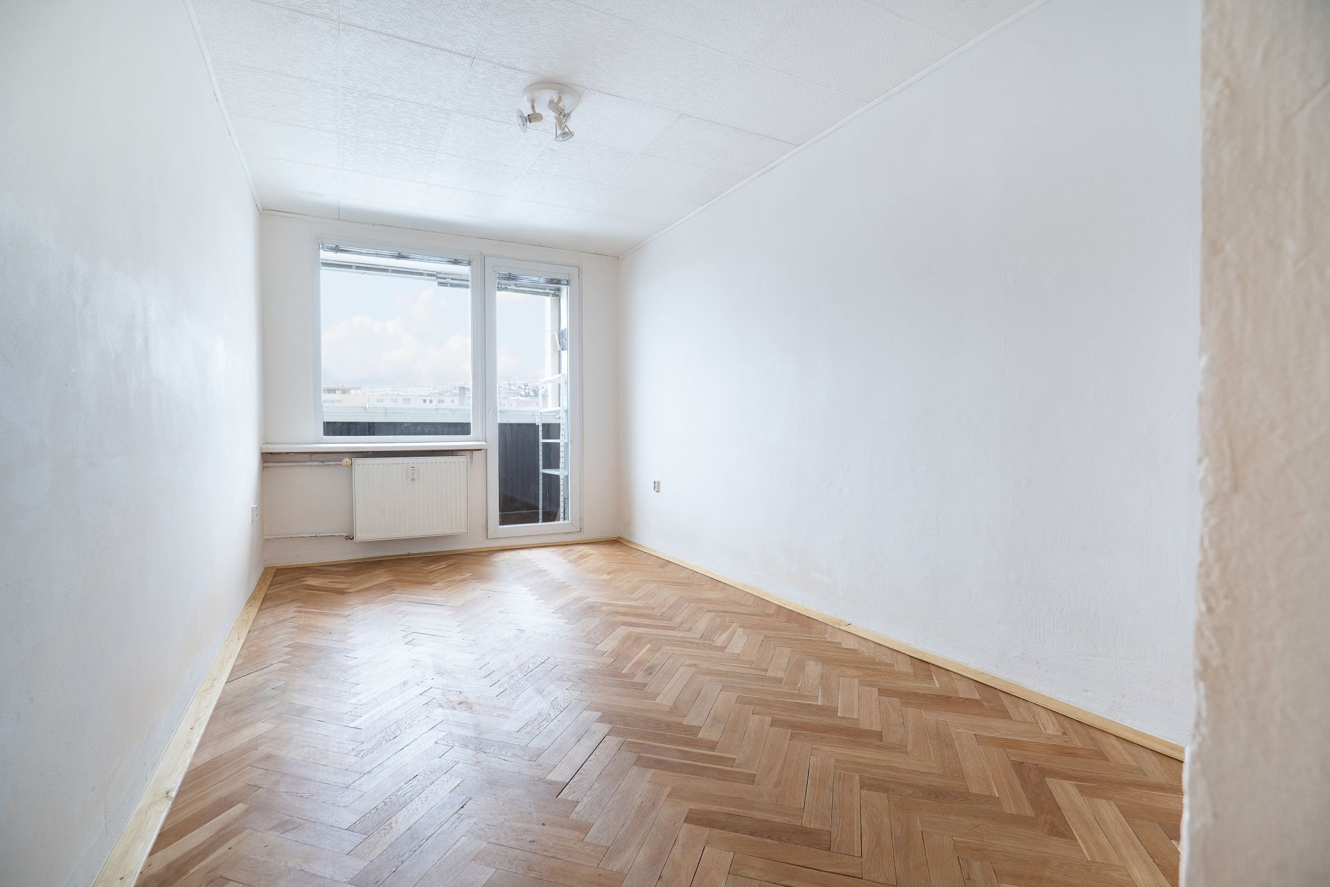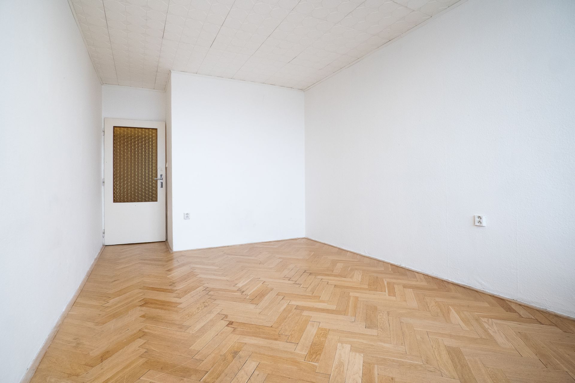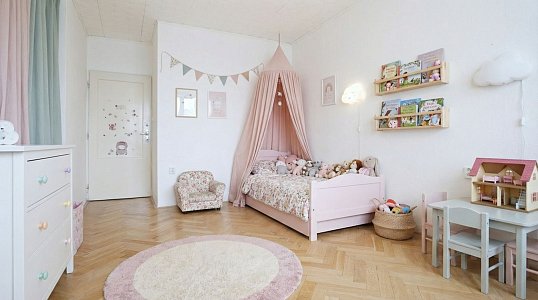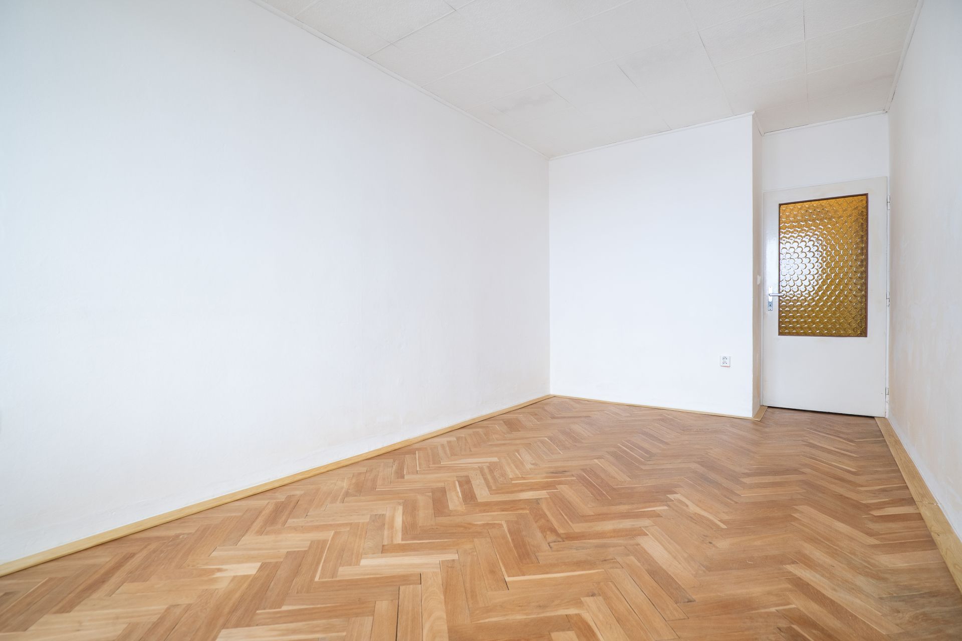 Zachovány byly také původní dubové parkety, které prošly odborným zbroušením a renovací. Díky tomu jsou dnes ve velmi dobrém stavu a dodávají bytu příjemnou, přirozenou atmosféru. Zároveň to znamená, že není nutné investovat do nových podlah a byt je funkční bez dalších větších nákladů.