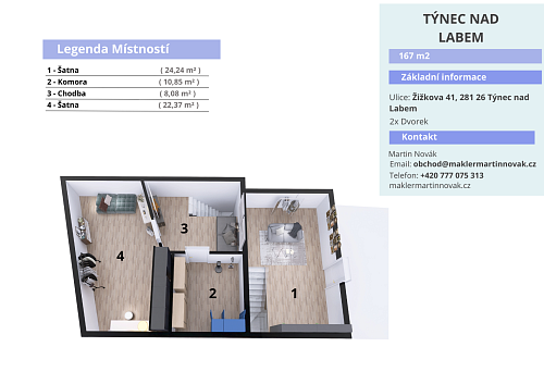 Každý dům má svůj příběh a tento čeká na pokračování. Přijďte se podívat, jak může vypadat váš nový domov či investice, a nechte na sebe dýchnout atmosféru Týnce nad Labem. Rádi vás provedeme a těšíme se na vaši návštěvu.